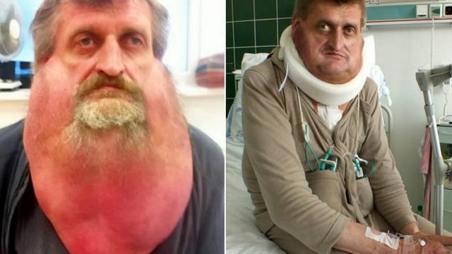 Médicos do distrito de Martin, na Eslováquia, fizeram uma cirurgia para remover um tumor que pesava cerca de 5 quilos no queixo de um homem. Stefan Zoleik, que trabalha como encanador, sofria com uma doença rara chamada Madelung, que causou fibras de gordura em toda a parte inferior do rosto.